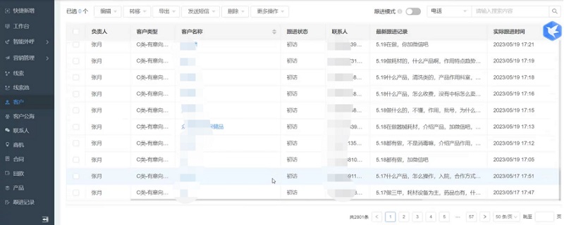 随着业务越来越好,客户数量猛增,管理层意识到,公司只有五六个销售,让销售每天做大量人工外呼,并用传统表单管理四五千家客户,效率肯定会大打折扣;另外,客户信息和跟进详情存留在销售手里,并未变成企业资产,一旦销售离职,企业很可能失去这些客户......