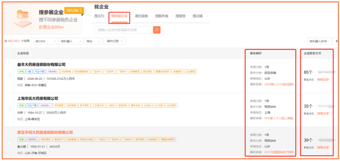 励销展会行业版汇聚了全网最新最热展会数据,位列SAAS行业第一,包括:各期会刊、历史参展企业数据,最全的企业情报数据,最全的联系方式......堪称展会行业「数据百科」。