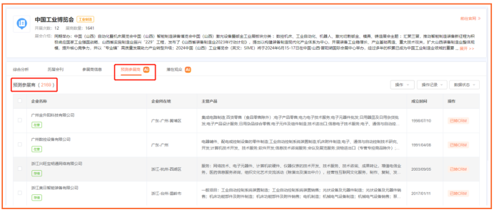 以【预测参展商】为例,根据历届展会数据分析,结合励销行业特征模型,智能推荐,精准预测参展企业,助力主办方把握商机。