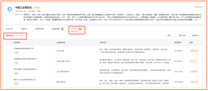 励销展会行业版不仅是市场上首家展会资源大数据平台,同时也是一个简单、高效的客户触达、客户管理工具,海量线索能一键转CRM、机器人,实现获客渠道精准转化。