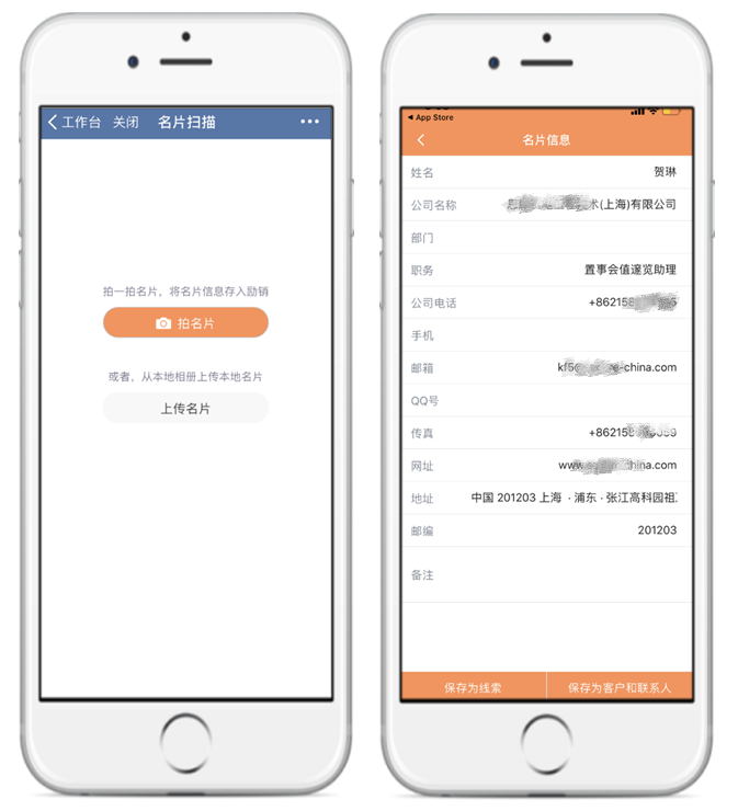 传统手写及表格的导入方式具有操作繁琐,难以寻找的痛点,使用励销CRM后可通过扫描客户名片的方式,快速录入重要信息,随拿随扫,不但操作便捷,也有效避免了客户遗漏的可能。