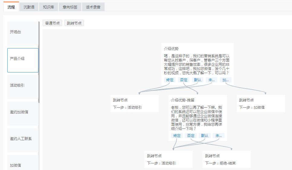 在回访过程中,我们对海超机械AI机器人的使用情况也做了相应的跟进,发现海超机械的AI机器人话术有些不同。于是我们找了公司的销售员进行了核实,销售员告诉我们,在启用AI机器人过后,每隔一段时间部门就会打磨一次致电话术,从开场白到业务介绍,从尝试邀约到添加微信,话术优化将跟随公司业务的发展持续进行着。